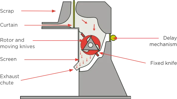 - Harte/spröde Kunststoffe (z. B. Acryl, Polystyrol): Neigen zum Zersplittern. Benötigen robuste Schneidkammern und profitieren oft von einer hohen Scherwirkung (wie V- oder Scherenschnittrotoren).